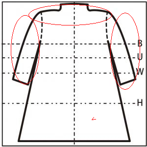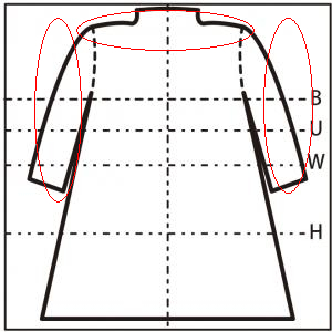 (※1)肩幅は袖と身頃の切替部分を直線で計測。