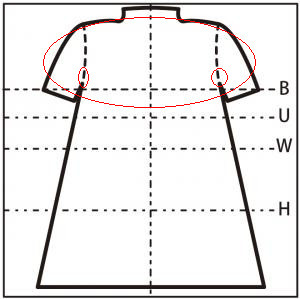 (※1)肩幅は袖と身頃の切替部分を直線で計測。