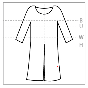 - サイズはやや小さく、丈はひざ下でした。 見た目はオシャレで良かったです。 トイレなど脱ぎ着が大変でした。