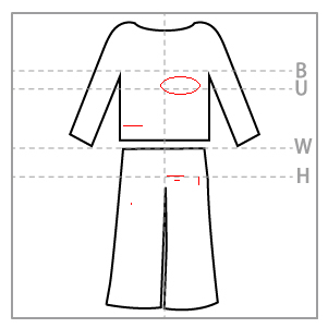 - ウエスト・腰部分に 7cm の横の糸つれ(3本あり)