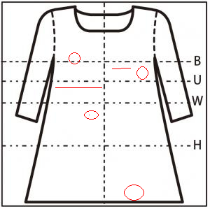 - 胸元に cm の糸の飛び出し(左右に2箇所)