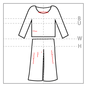 - ウエスト・腰部分に 5cm の横の糸つれ(トップス右側)