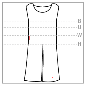 - ウエスト・腰部分に 15cm の縦の糸つれ