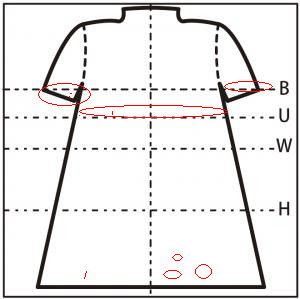 - ウエスト・腰部分に 20cm の 縦の糸つれ (中心あたり)