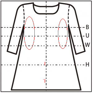 (※1)肩幅は袖と身頃の切替部分を直線で計測。
