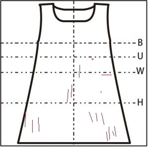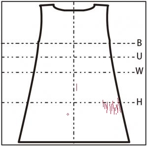 - ウエスト・腰部分に 0.5cm の縦の糸つれ