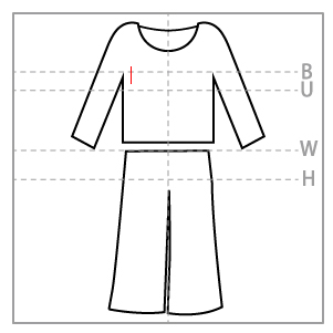 トップスはゆったりとしたデザインでストレスフリー。パンツはウエストにゴムが入っているのでぴったりと着られるが、ファスナーがないので、ヒップの大きい方は着脱に注意。パンツはくるぶし丈でちょうど良いサイズ感。