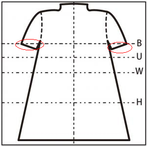 (※1)肩幅は袖と身頃の切替部分を直線で計測。