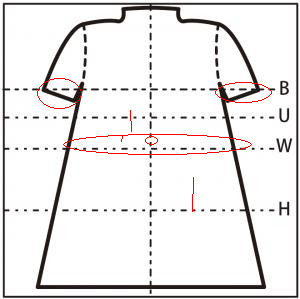 (※1)肩幅は袖と身頃の切替部分を直線で計測。
