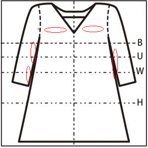 - 胸元に cm の縦の糸つれ