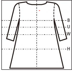 上半身はややゆとりあり。ウエスト〜ヒップにかけてはややタイト。ぽっこりお腹は目立ちやすいので食後は注意。くるぶしが隠れる丈。