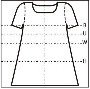 ※バスト・アンダーバストが「~」となっているのは、ゴムが入っているから。