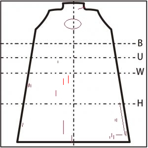 - スカート中央付近に 直径10cm の糸の飛び出し