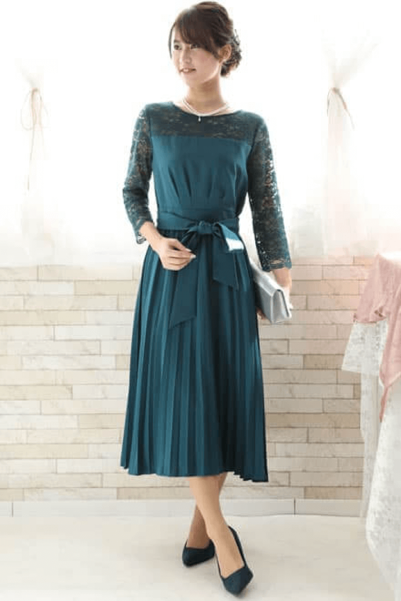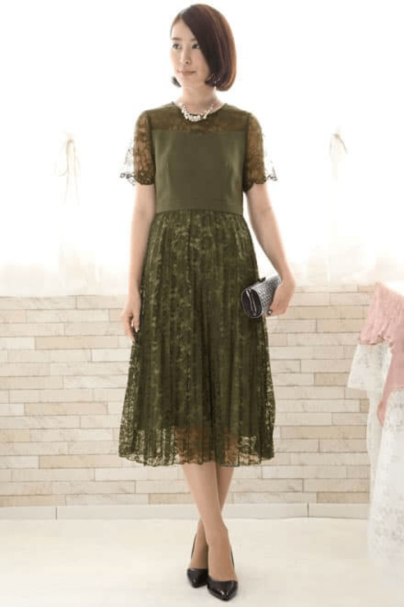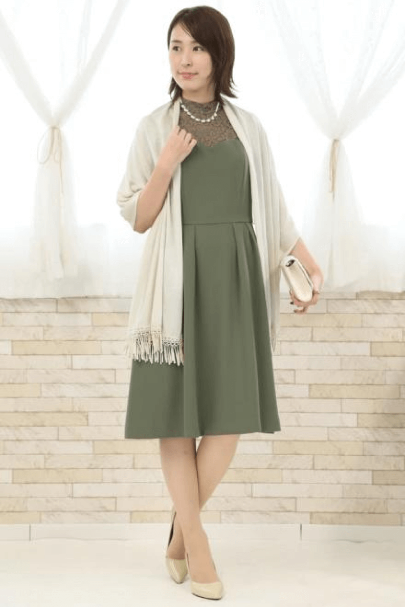 1.秋の定番、グリーンのドレスコーデ