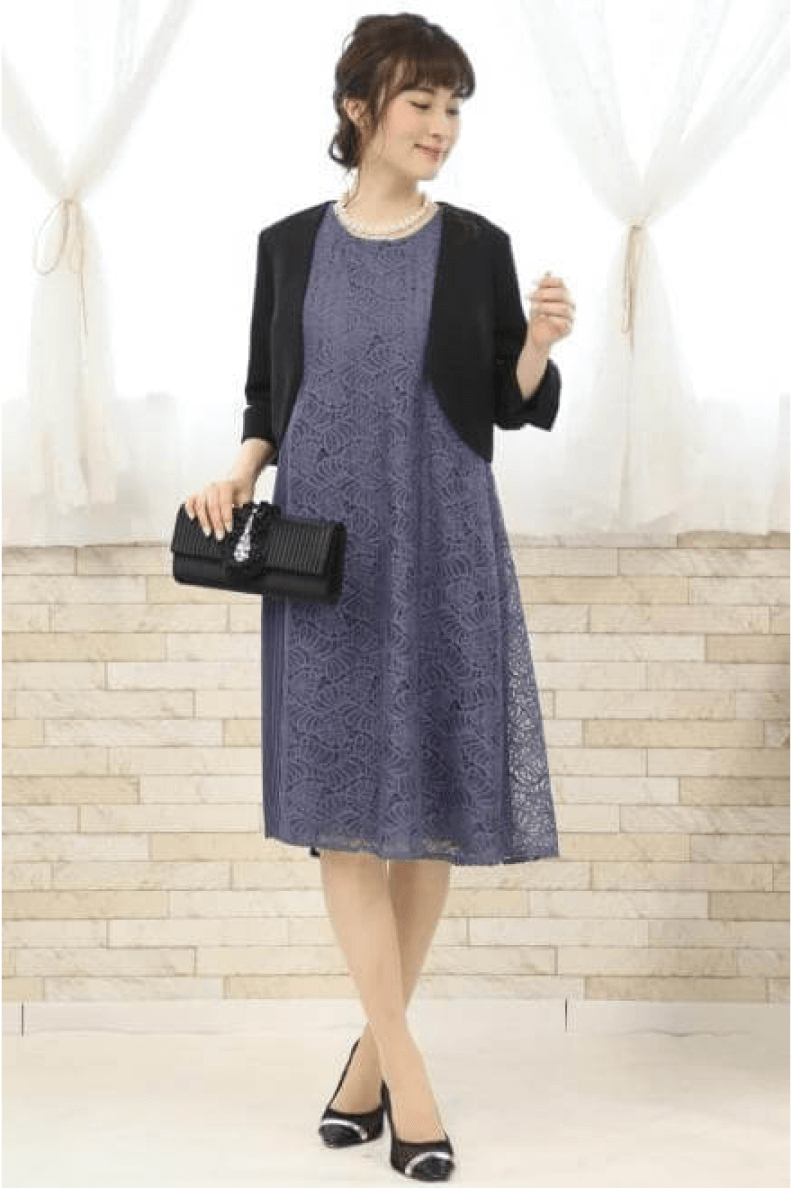 黒やネイビー以外の色を着てみたいけれど、色味が強すぎるのも抵抗がある…とお考えの方は、ぜひブルー系のドレスを。