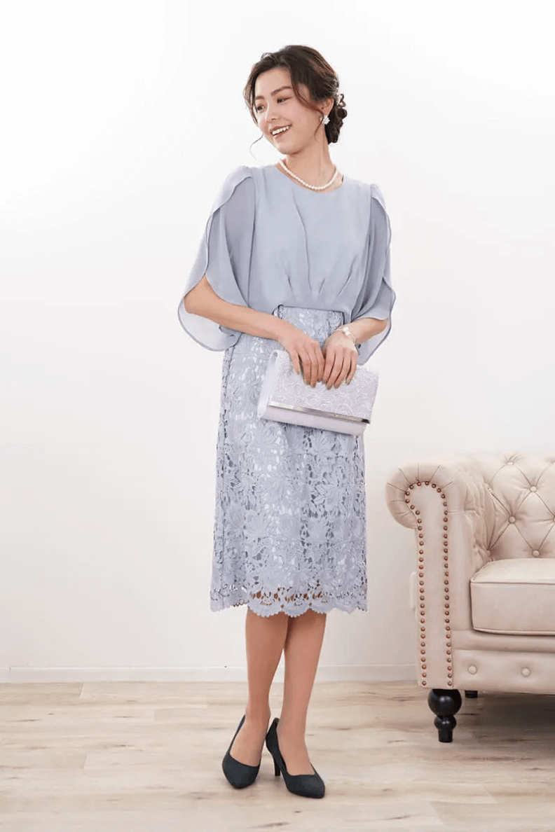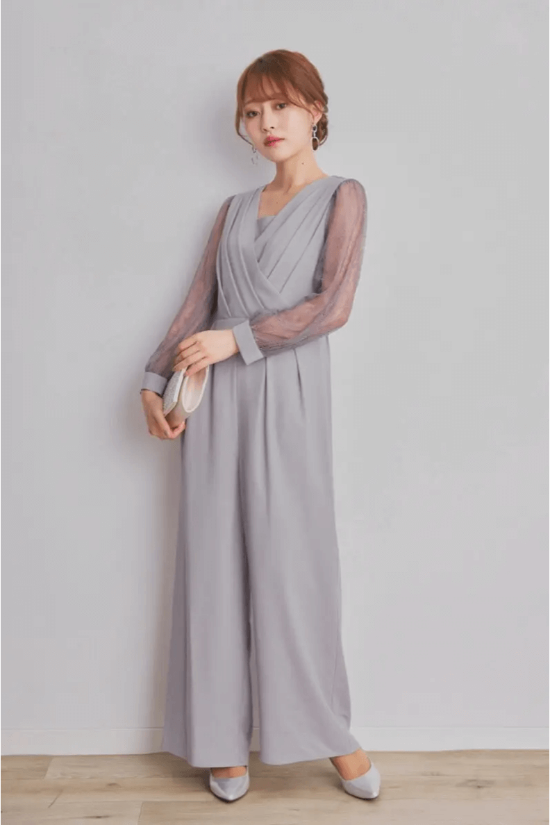白味の強いライトシルバーには、ネイビーやブラック小物を合わせるときちんと感のあるコーディネートに。特にネイビーは重たくなりすぎないので夏にぴったり。ダークグレーには、シルバー小物を合わせ同系色で統一すると涼しげで綺麗にまとまります。ラメ入りストールやビジュー付き小物を合わせると、よりパーティーらしく華やかなスタイルに。