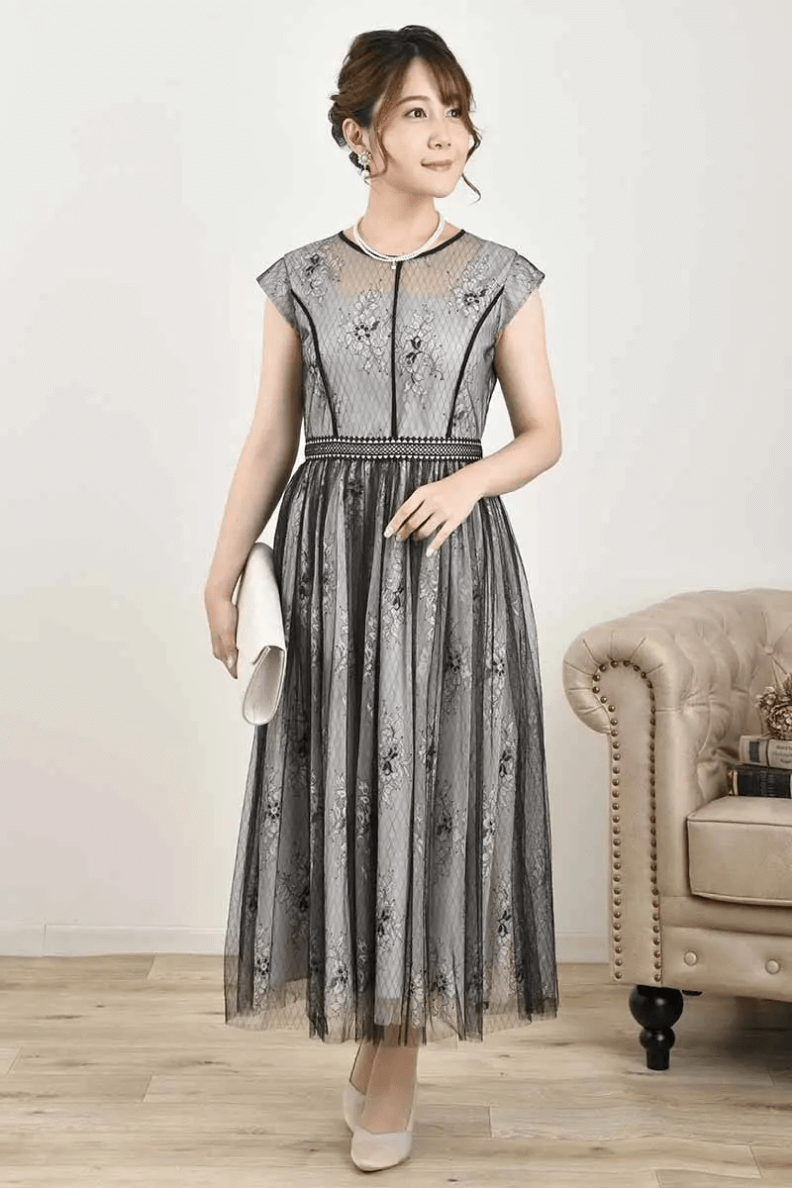 そんなチュール素材は、エアリーな質感が夏にぴったり。重たくなりがちなダークカラーも軽やかに見せてくれます。ここでは、大人っぽくエレガントに着こなせるチュール素材のパーティードレスをご紹介します。